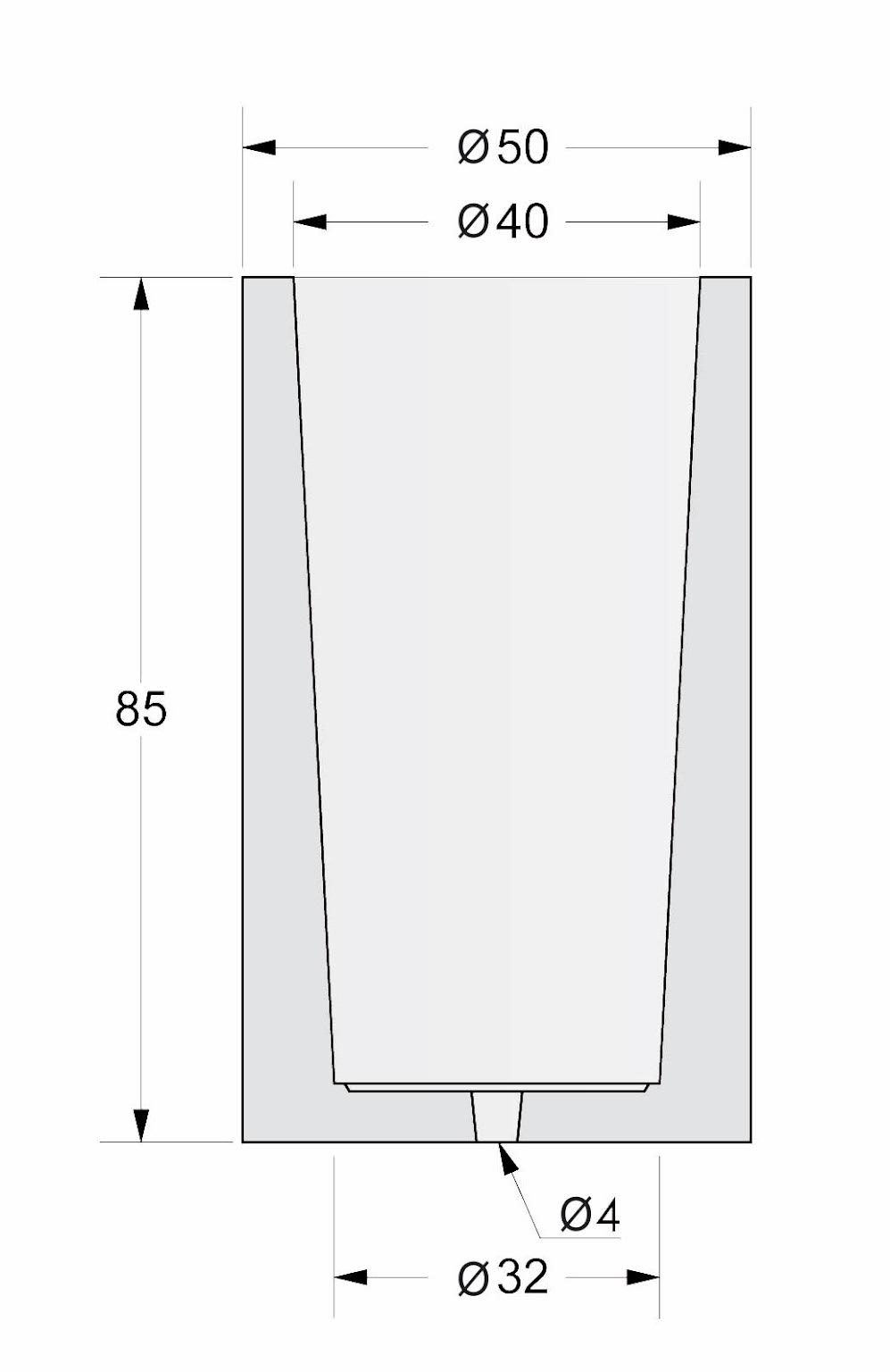 • Trou d’évacuation (au fond) : Diamètre 4 cm.