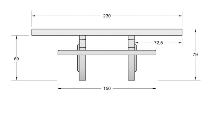 Débord du plateau : 725 mm.