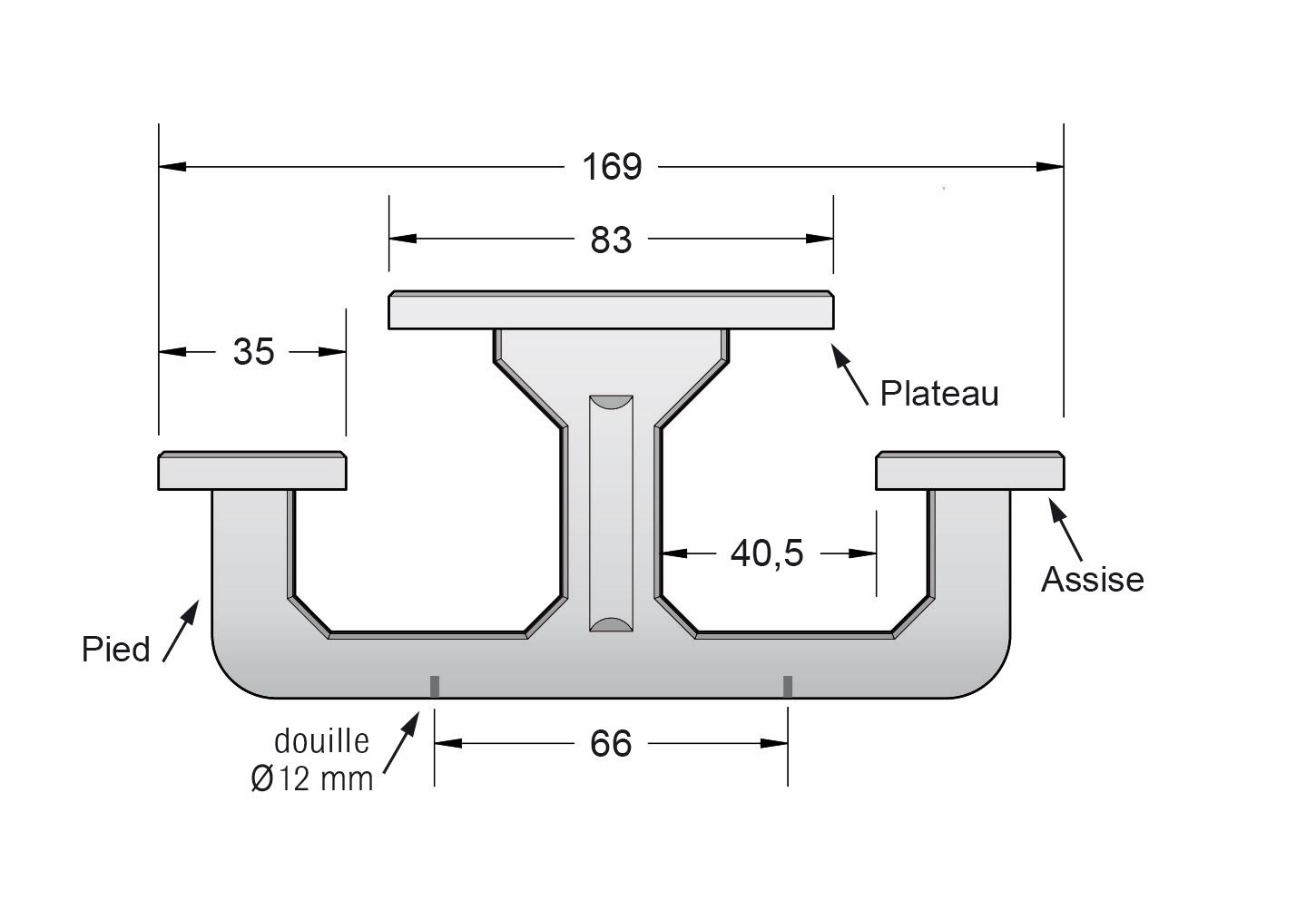 Installation : À poser ou à sceller à l’aide de 4 tiges filetées de diamètre 12 mm (non fournies).