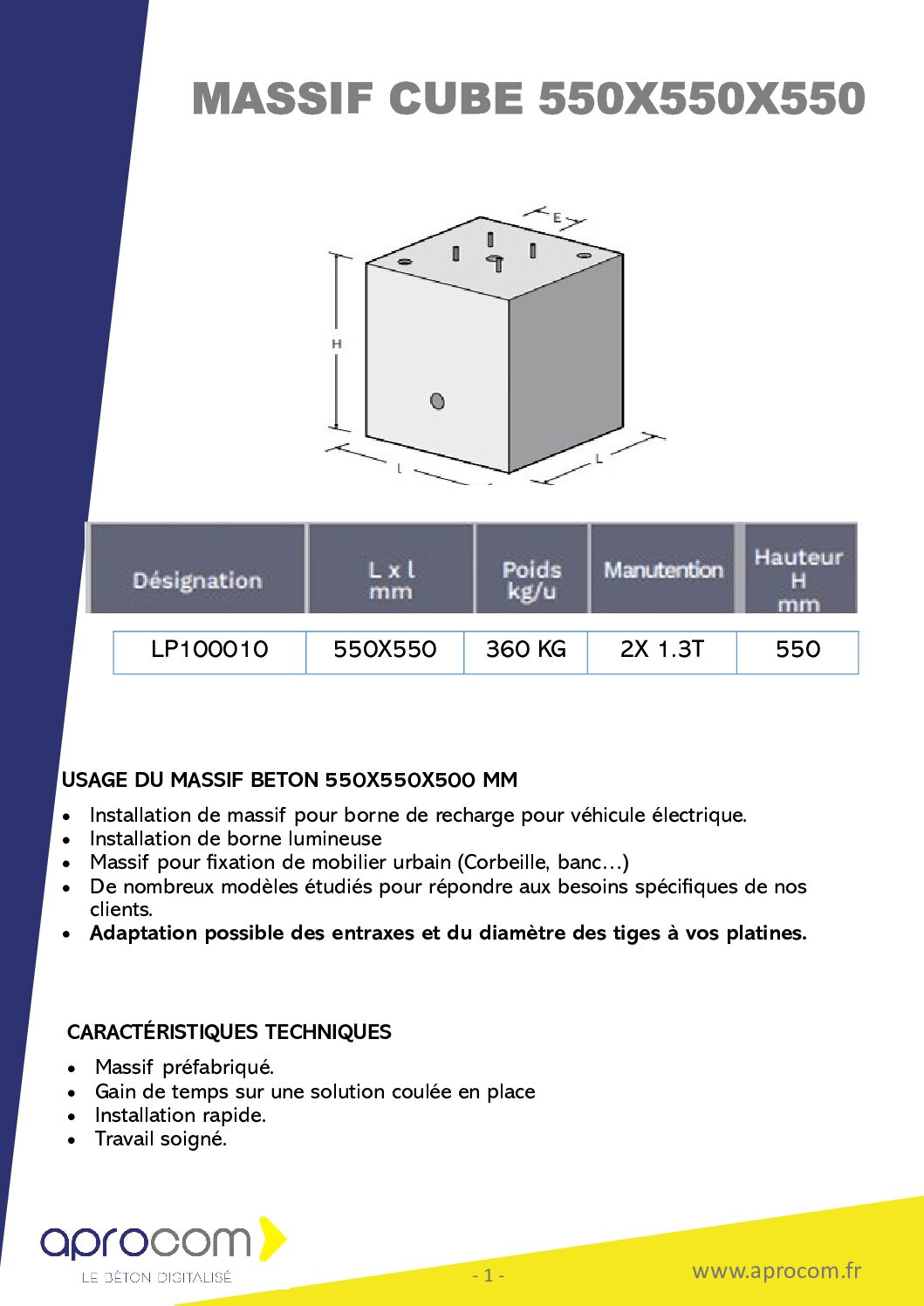 Le MASSIF CUBE 550X550X550MM APROCOM est une solution préfabriquée, offrant une installation rapide et soignée pour de nombreuses applications comme la pose de borne lumineuse, la fixation de mobilier, la pose de panneau de chantier etc…).