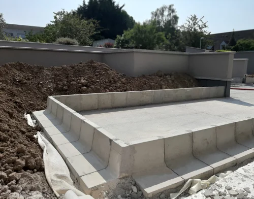 Le MINI MUR est un élément en forme de L, auto-stable, conçu spécifiquement pour la retenue de terre dans le cadre d’aménagements paysagers, offrant polyvalence et esthétique à vos projets.